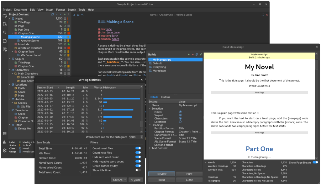 If you’re a novelist, especially one who prefers an organised, distraction-free approach to writing, I highly recommend giving novelWriter a try. It’s designed with long-form writing in mind, making it far more intuitive for novelists than standard word processors.